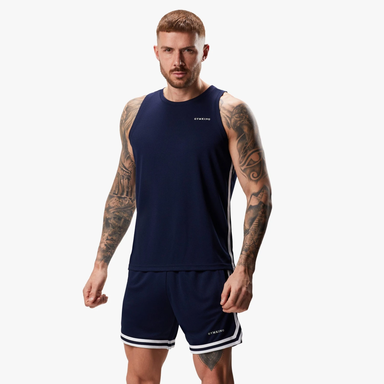 - Gym King linear branding on chest, in White
