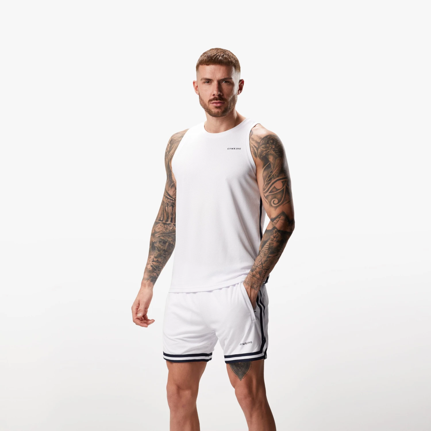 - Gym King linear branding on chest, in Navy