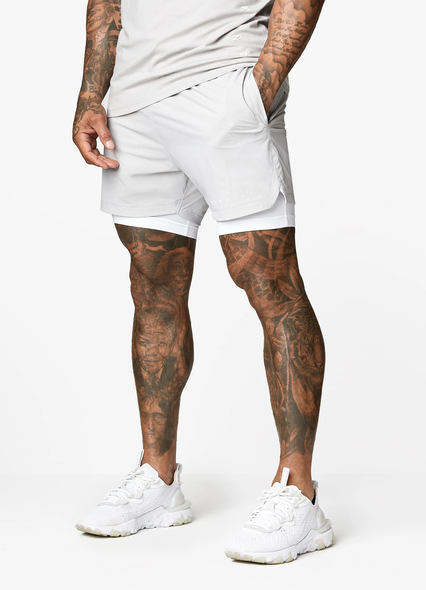 - Contrast high build Gym King logo on lower leg, in White